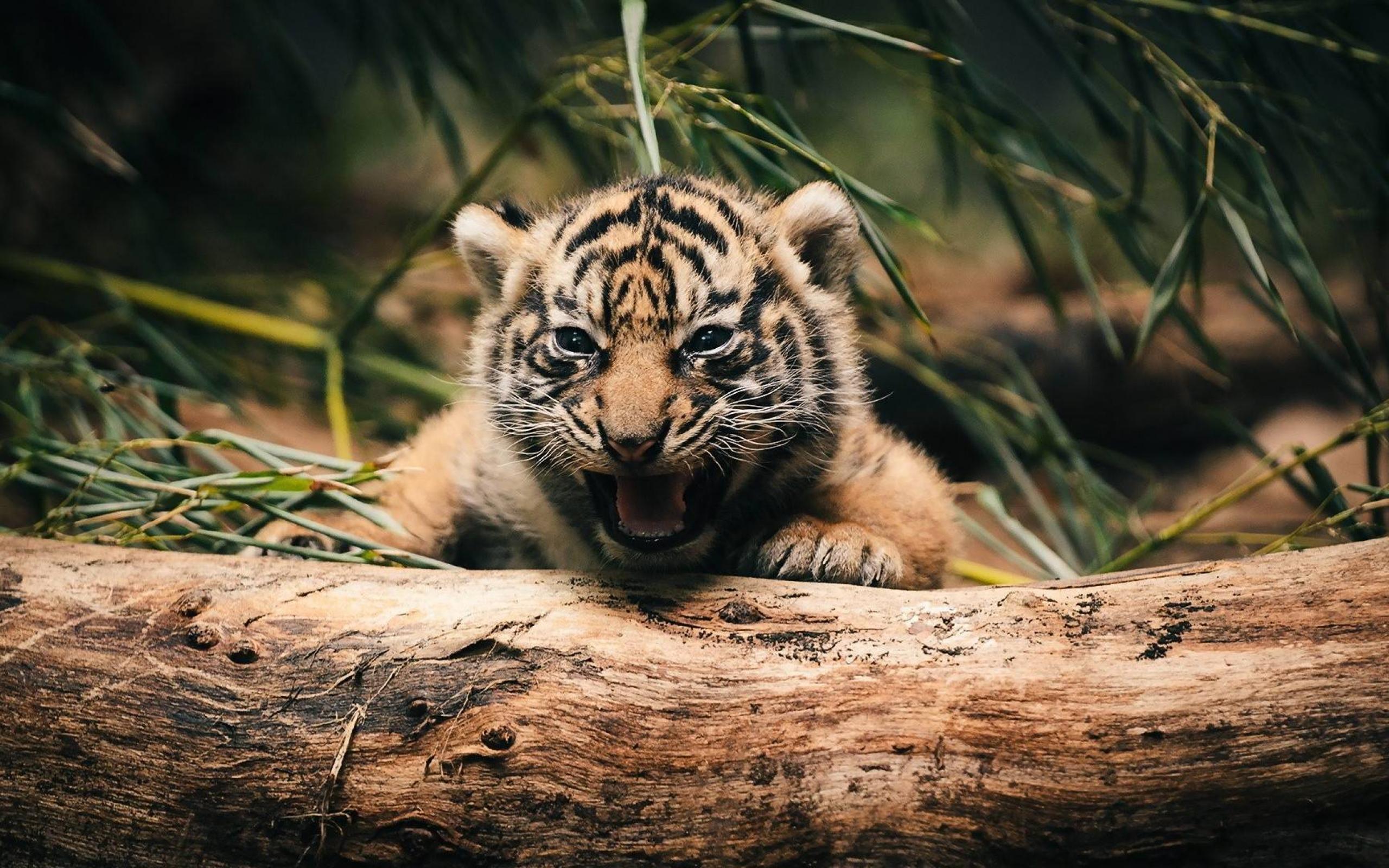 Wallpaper Tiger hiding behind a tree