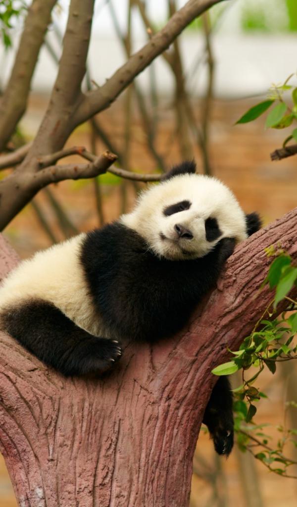 Wallpaper Little Panda sleeping sweetly in the fork of a tree