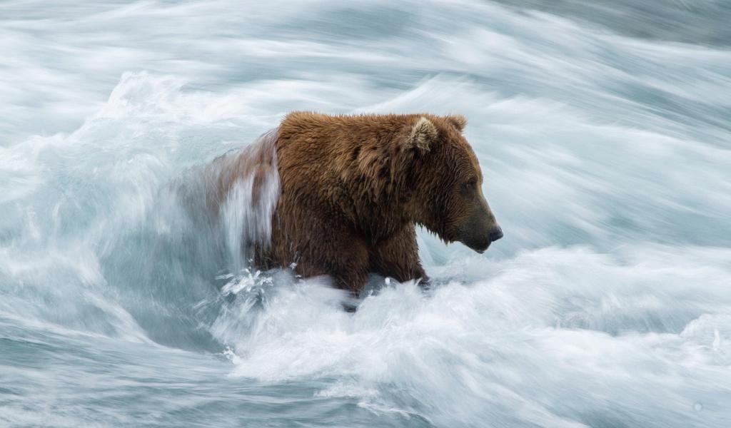 Wallpaper Brown bear in the turbulent flow