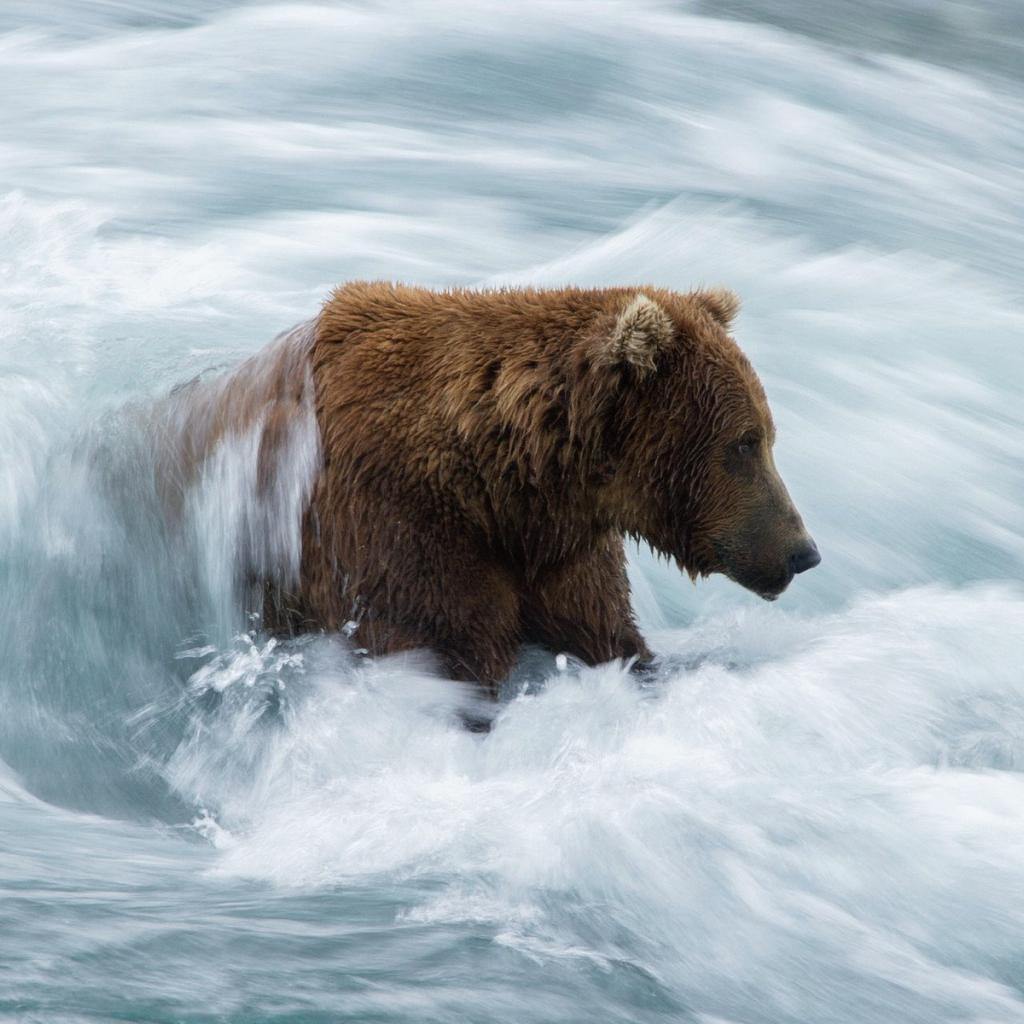 Wallpaper Brown bear in the turbulent flow