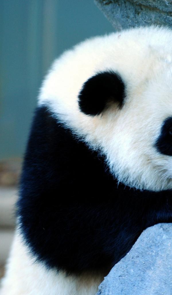 Wallpaper Panda at the stone wall