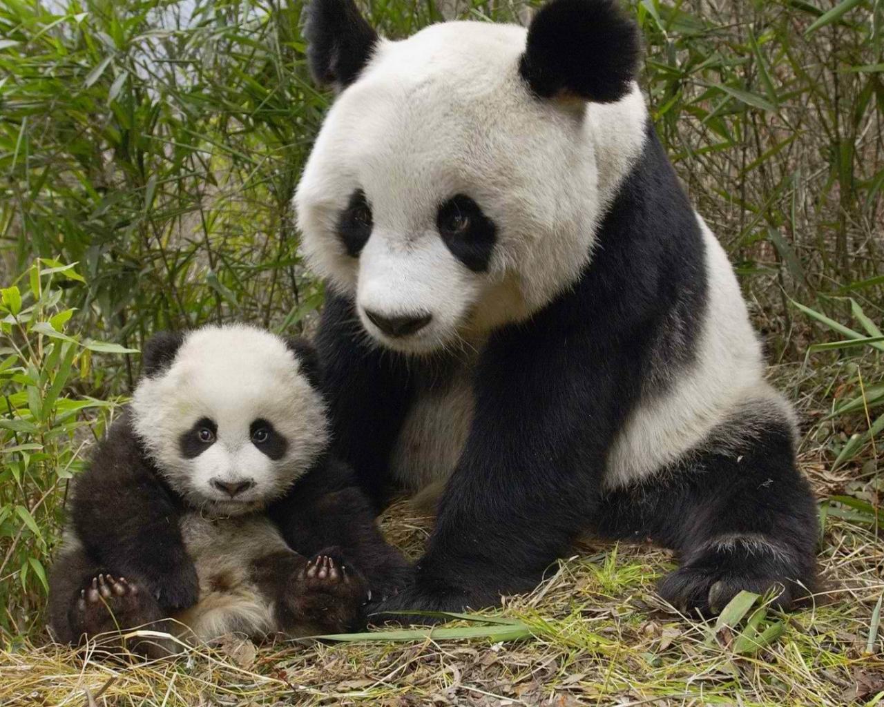 Wallpaper Panda with cub