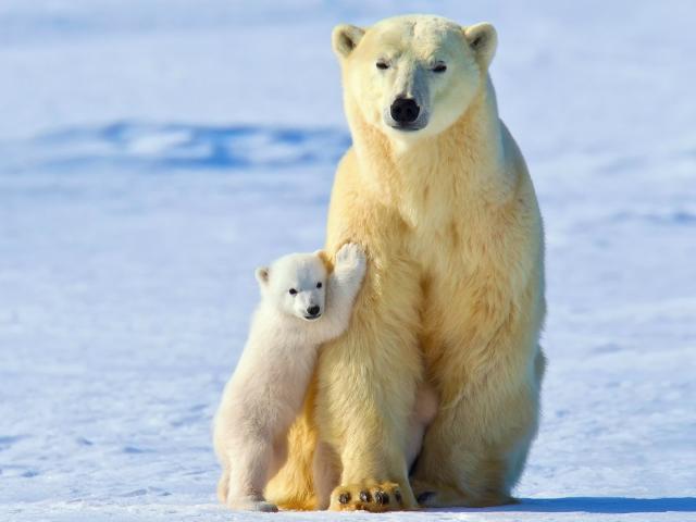 Wallpaper Bear clung to her mother