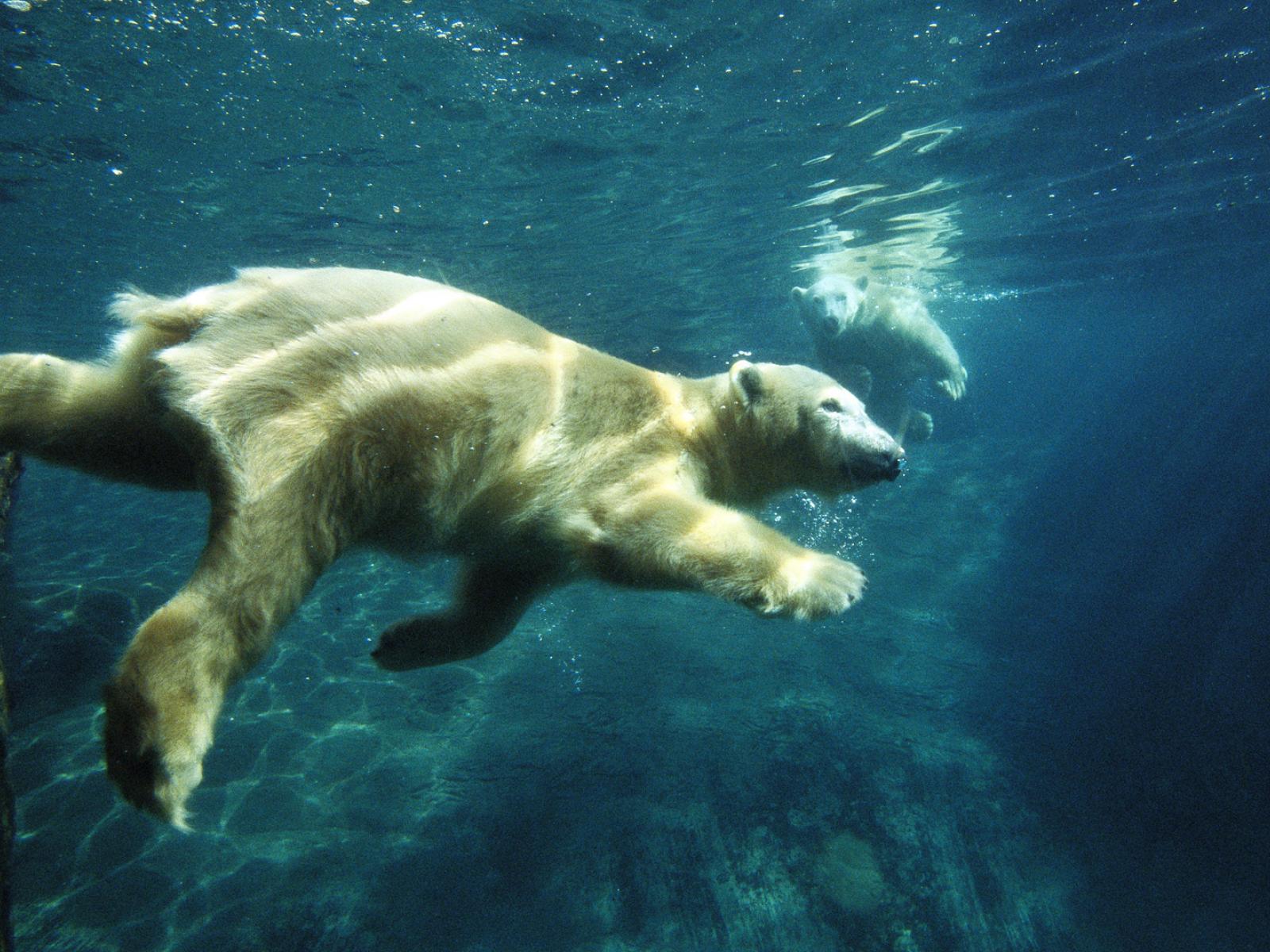 Wallpaper Polar bear swims underwater