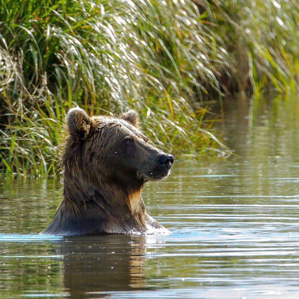 Wallpaper Bear swimming in a river
