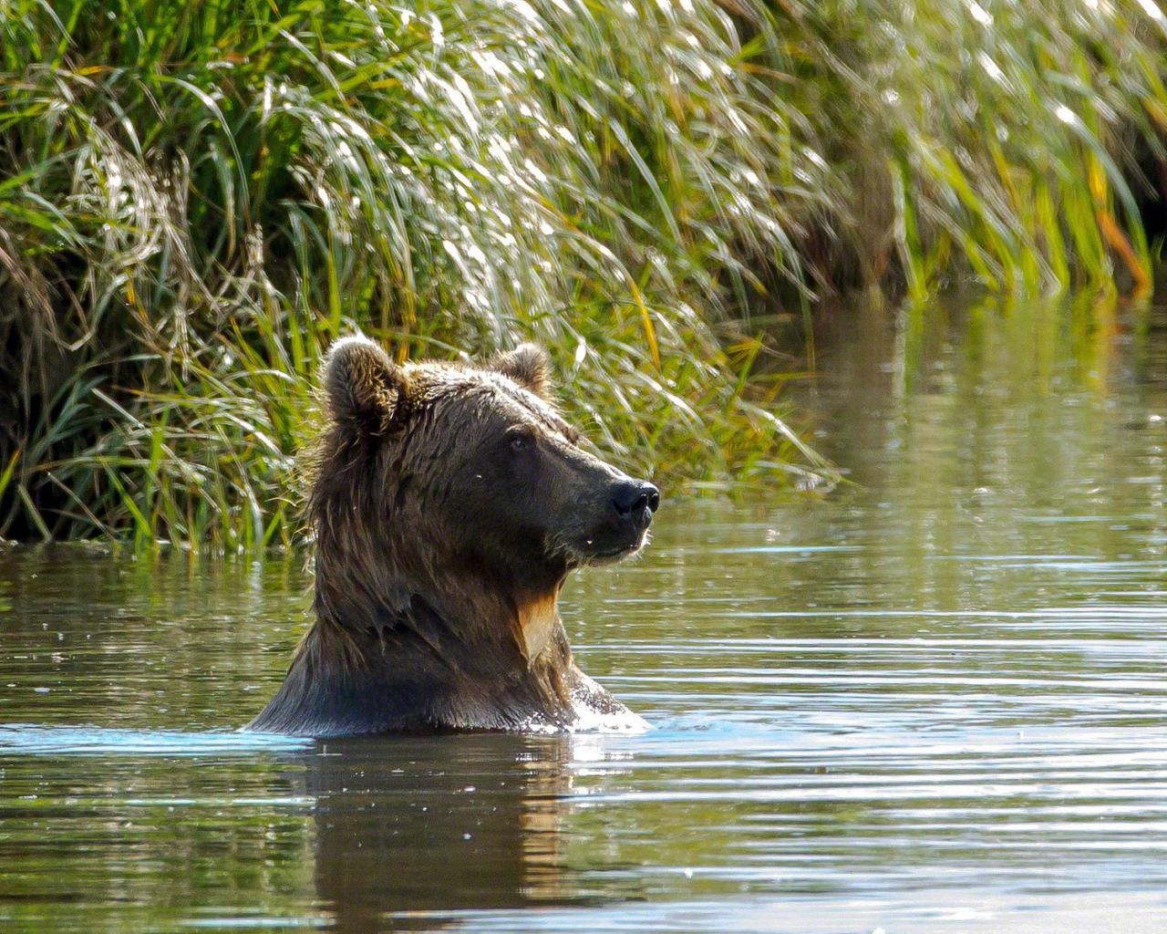 Wallpaper Bear swimming in a river