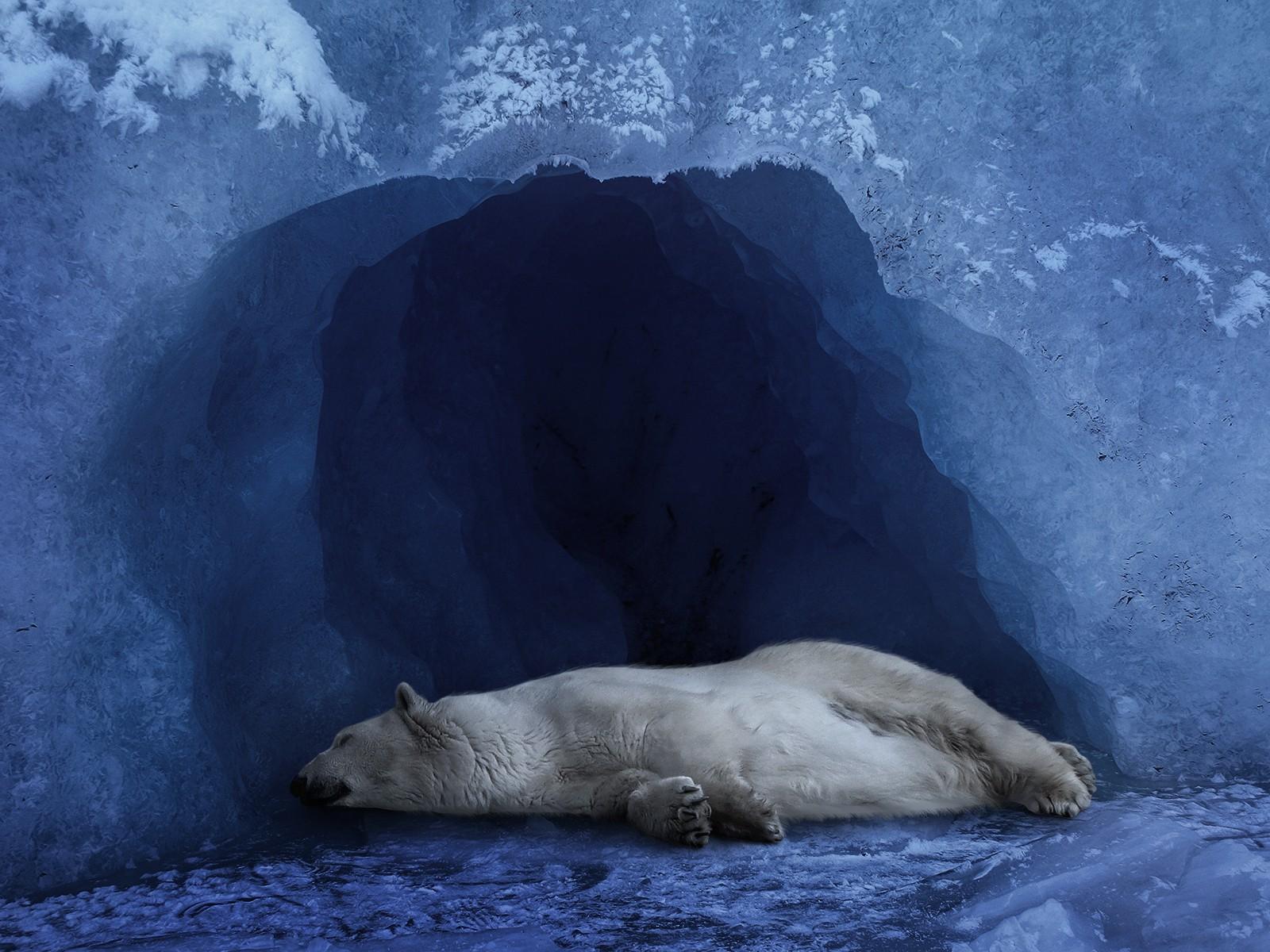 Wallpaper A polar bear sleeping in the ice cave