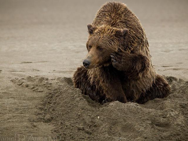 Wallpaper Bear buries itself in the sand