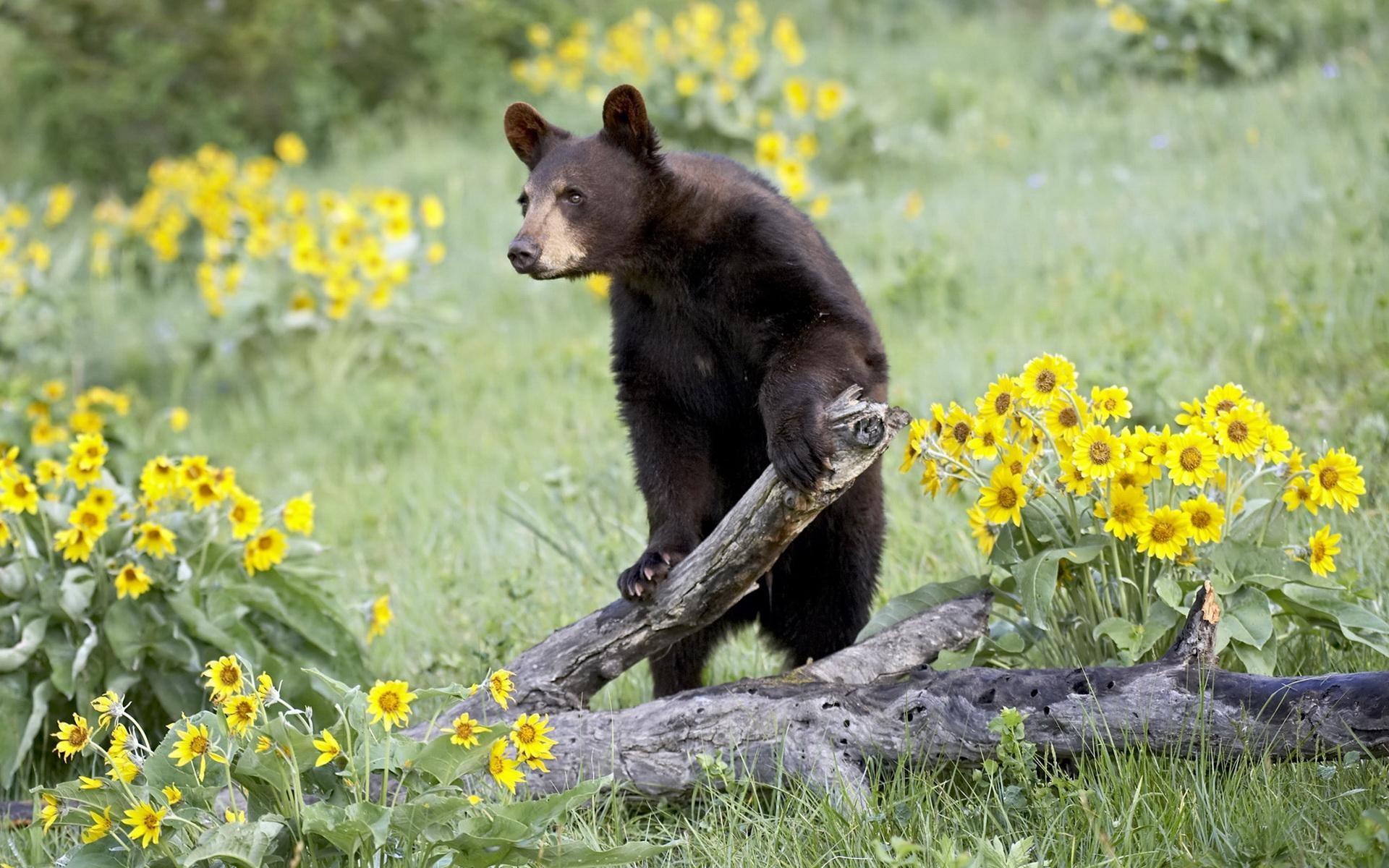 Wallpaper Bear among the flowers