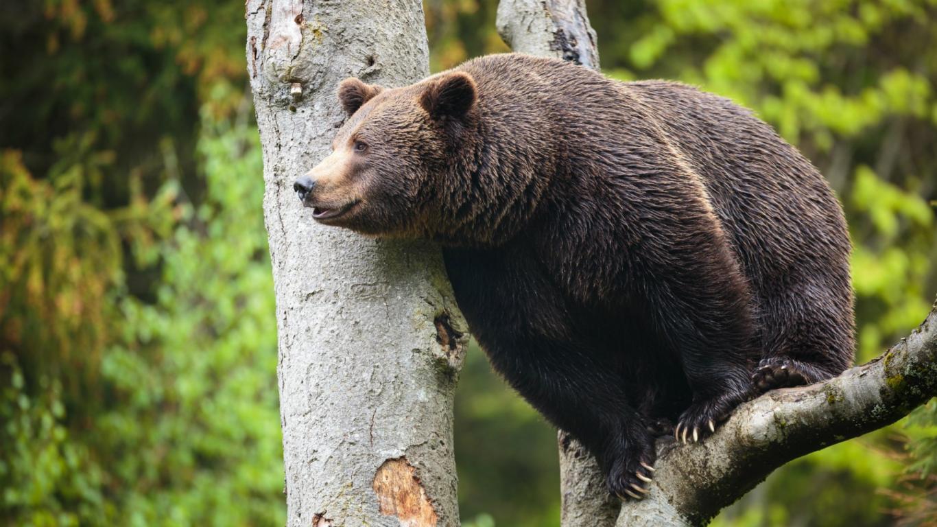 Wallpaper Bear sits high on a tree