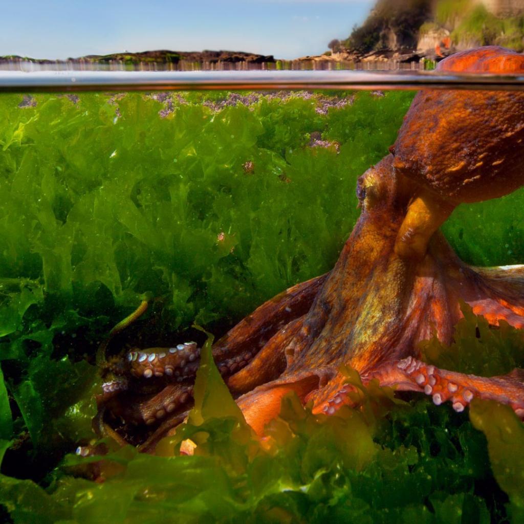 Wallpaper Octopus in thickets of seaweed
