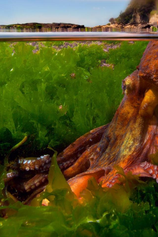 Wallpaper Octopus in thickets of seaweed
