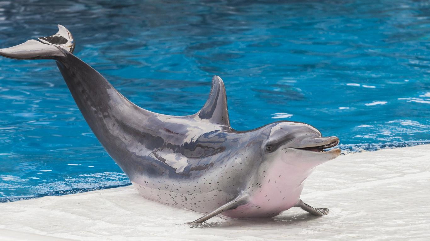 Wallpaper Dolphin on the edge of the pool in the dolphinarium