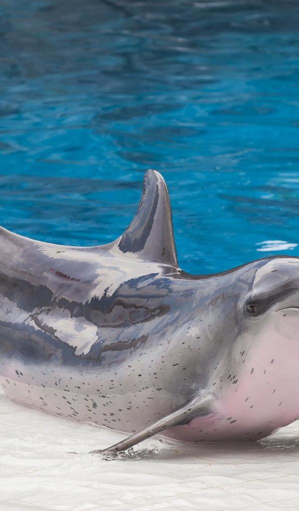 Wallpaper Dolphin on the edge of the pool in the dolphinarium