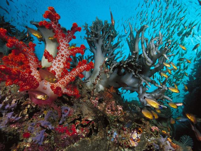 Wallpaper Goldfish among the coral polyps