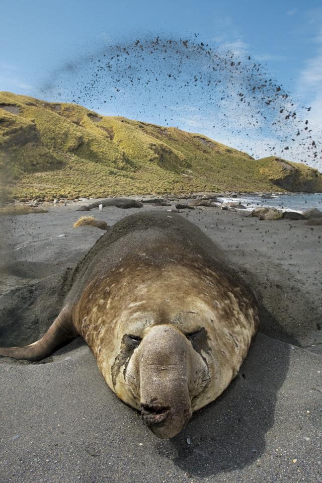 Wallpaper Bear buries itself in the sand
