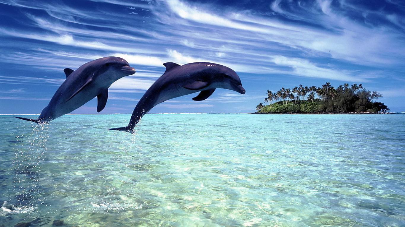 Wallpaper A pair of dolphins in the blue waters