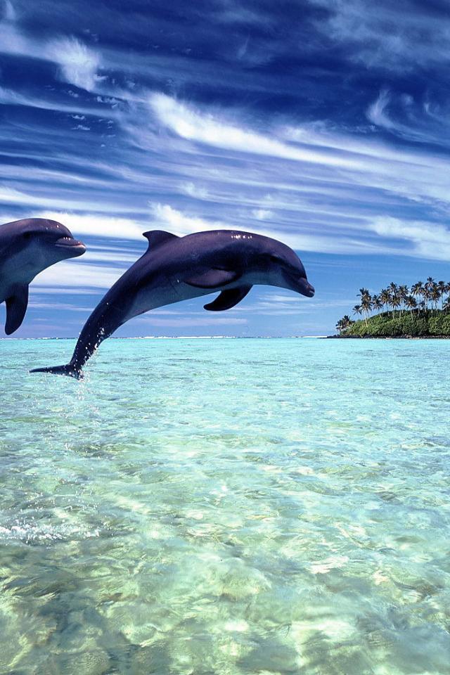 Wallpaper Pair of dolphins in the water