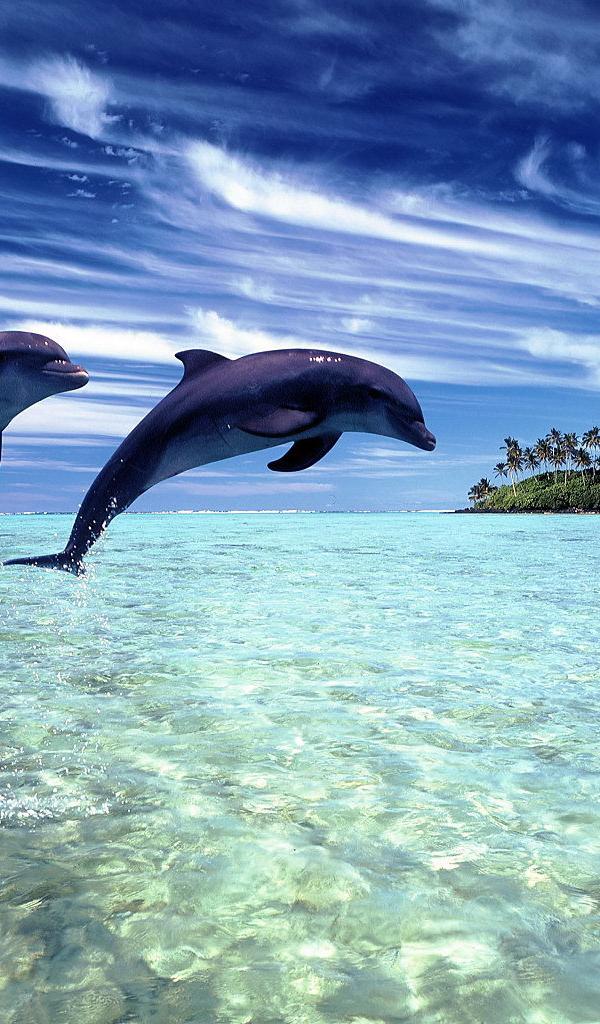 » Wallpaper A pair of dolphins jumped out of the water