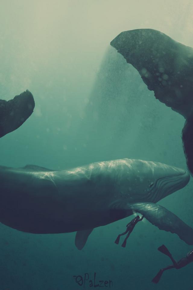 » Wallpaper Whales and divers