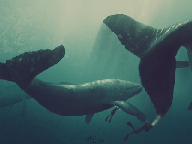 » Wallpaper Whales and divers