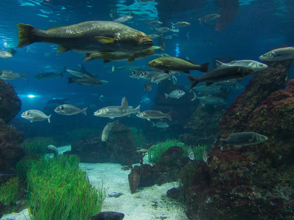 Wallpaper Big fish in the shoal of small fish