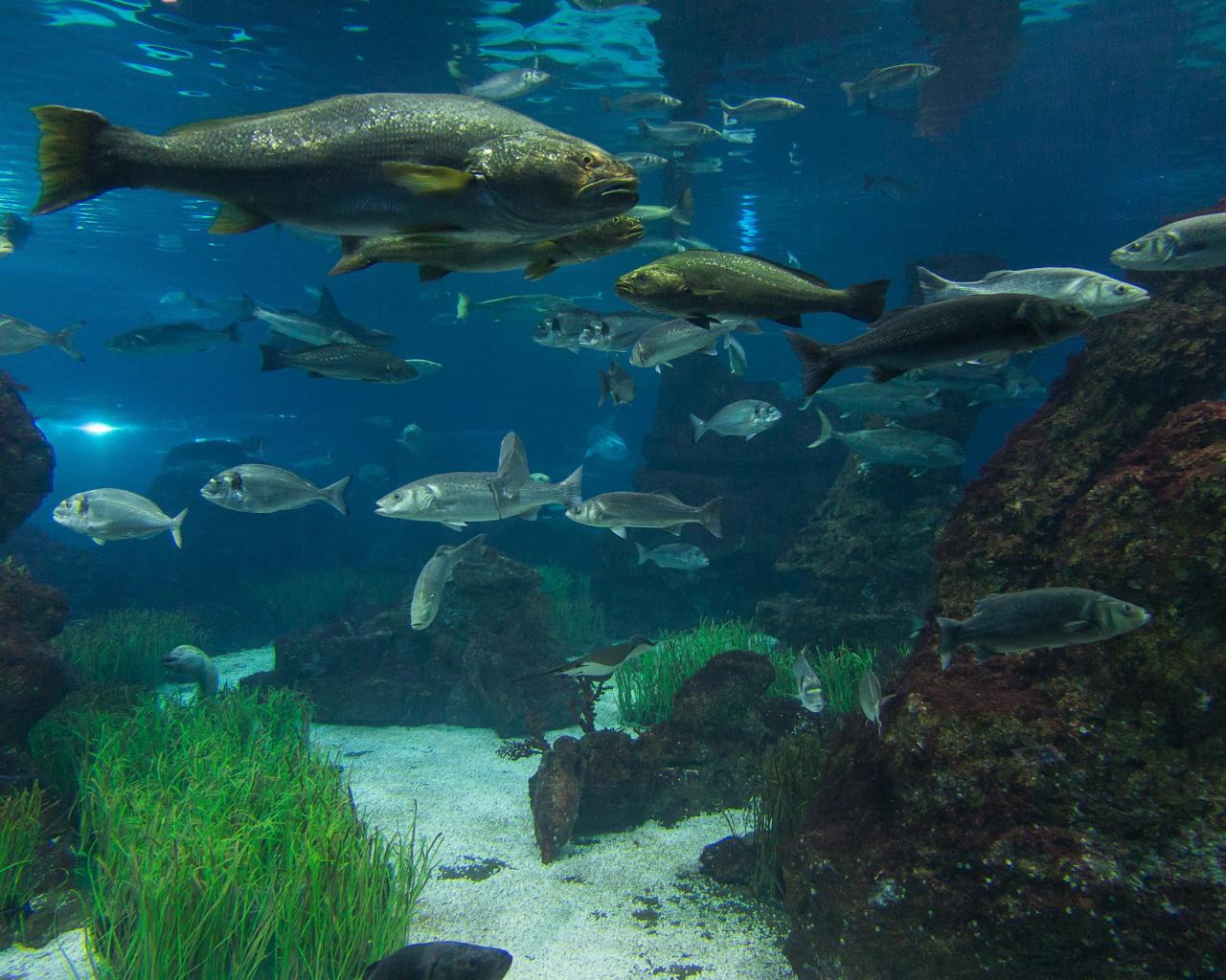Wallpaper Big fish in the shoal of small fish
