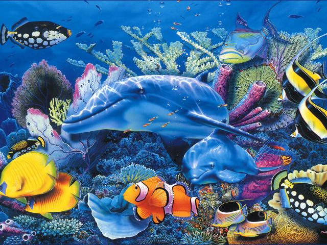 Wallpaper Dolphins in the aquarium