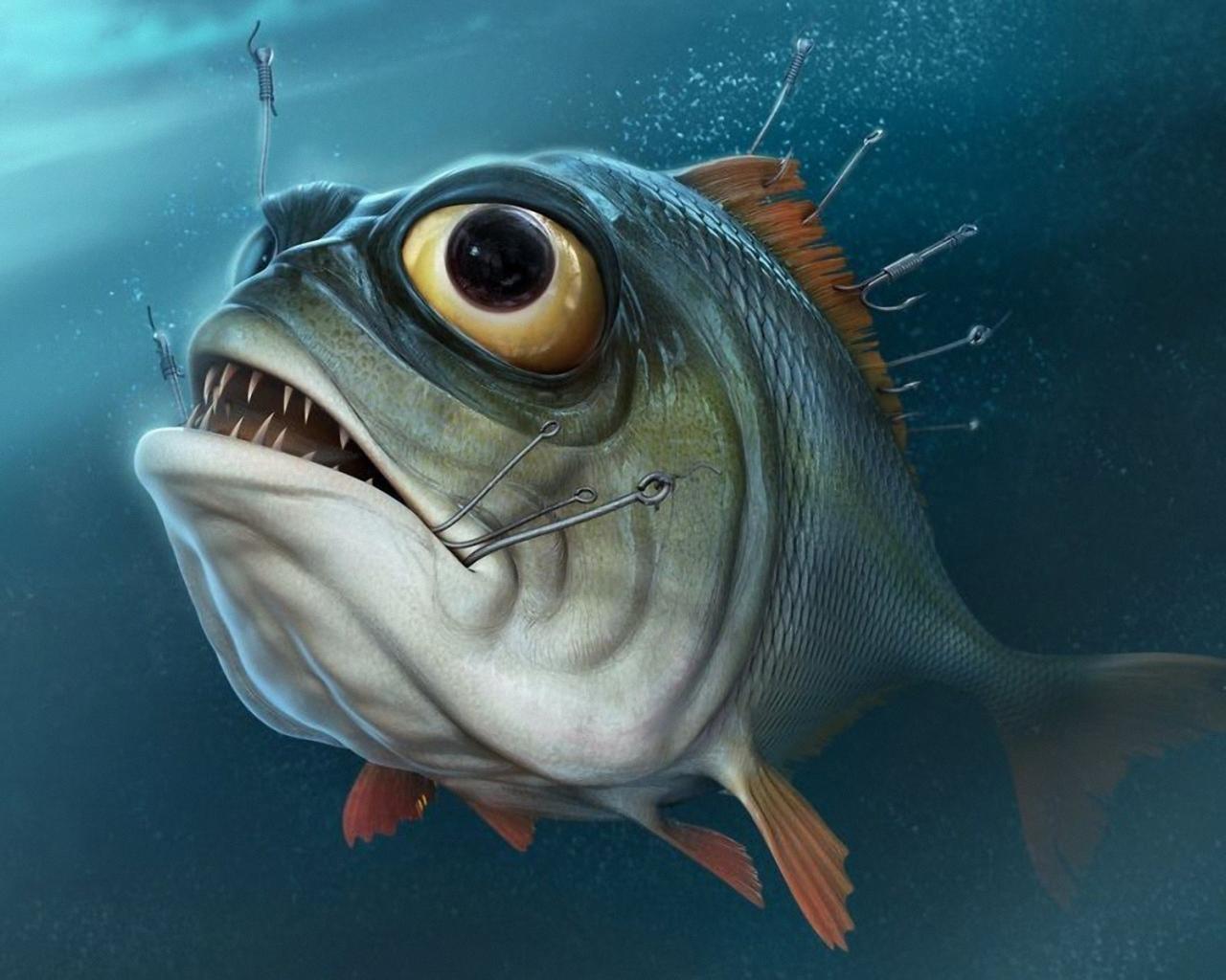 Wallpaper Fish with hooks in your mouth