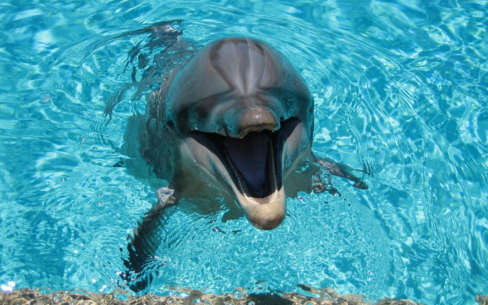 Wallpaper Cheerful dolphin in the pool