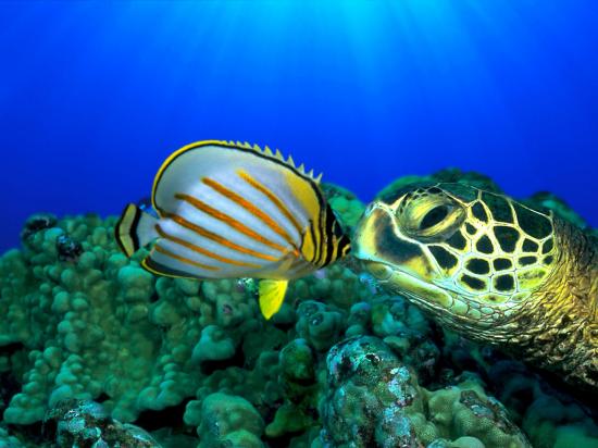 Wallpaper Turtle and fish