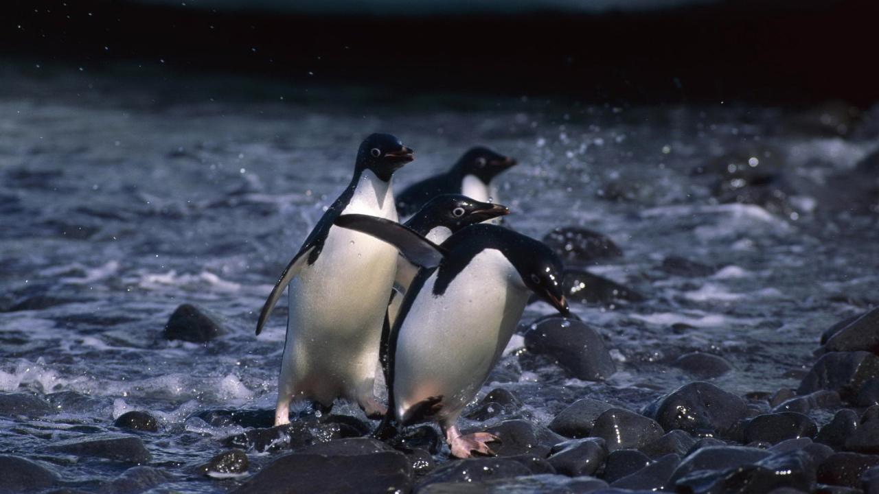 Wallpaper Penguins come ashore