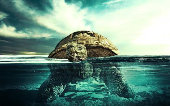Wallpaper Turtle floating on water
