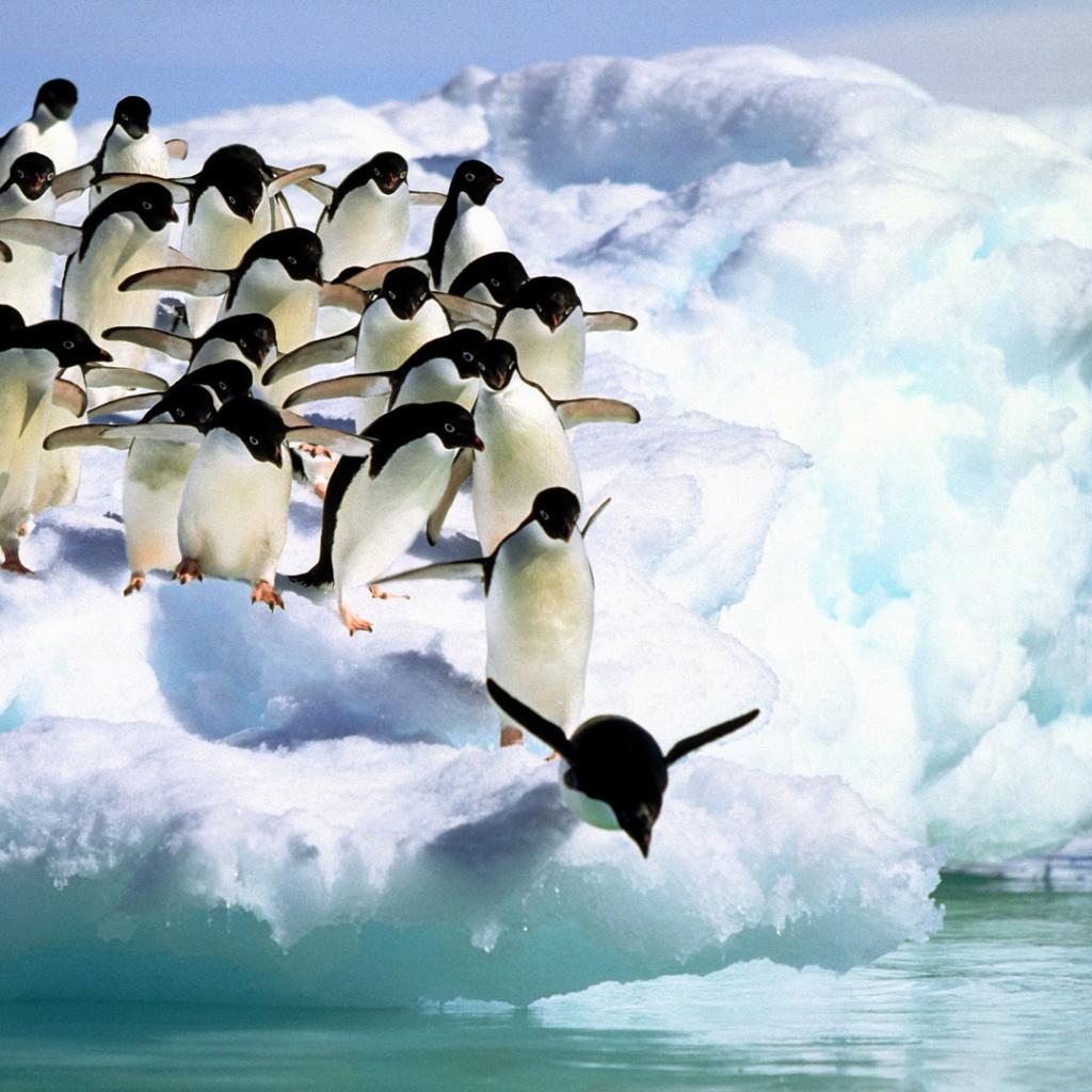 Wallpaper Penguins jump in water