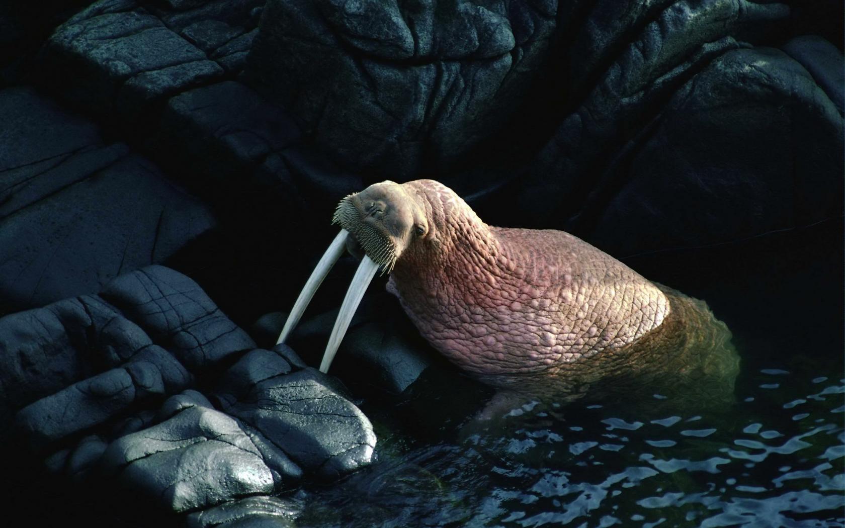 Wallpaper Walrus on the rocks