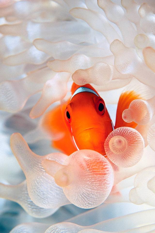 Wallpaper Fish hiding in the coral