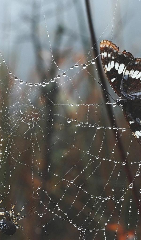 Wallpaper Butterfly sitting on the web