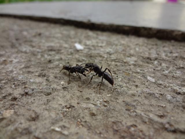 » Wallpaper Two black ants on the ground