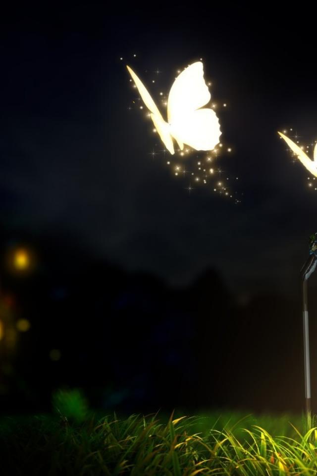 Wallpaper Glowing Butterfly night