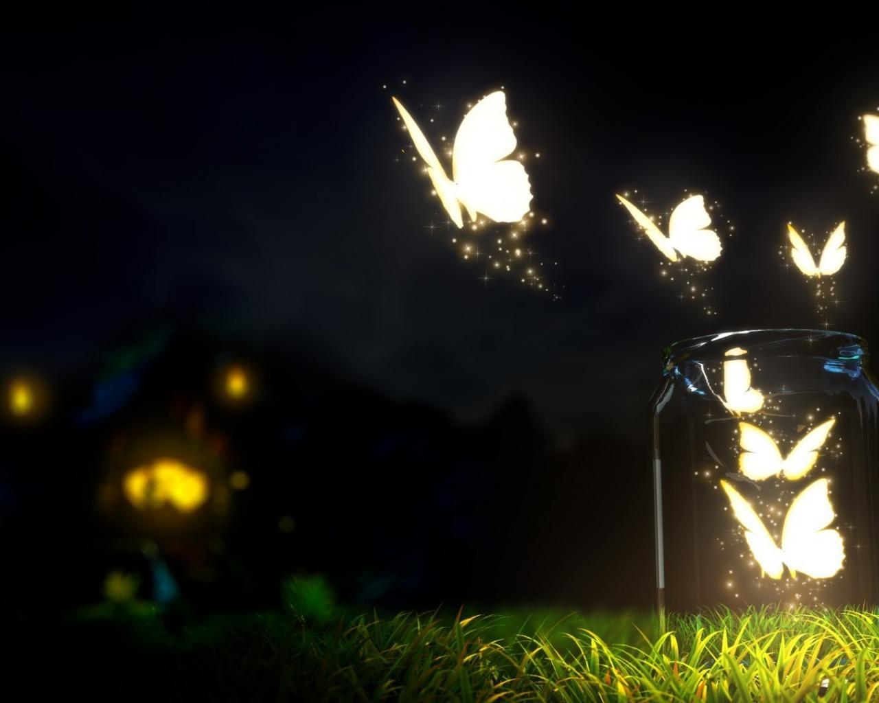 Wallpaper Glowing Butterfly night