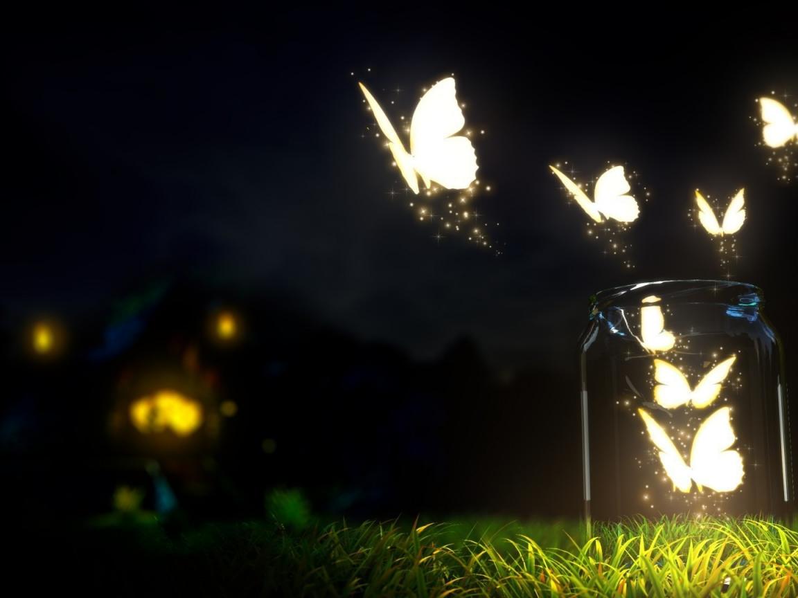 Wallpaper Glowing Butterfly night