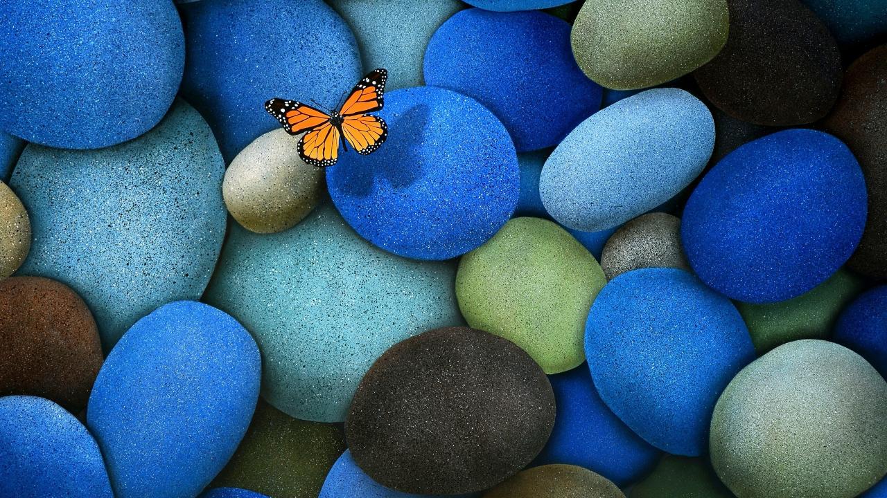 Wallpaper Butterfly on smooth stones