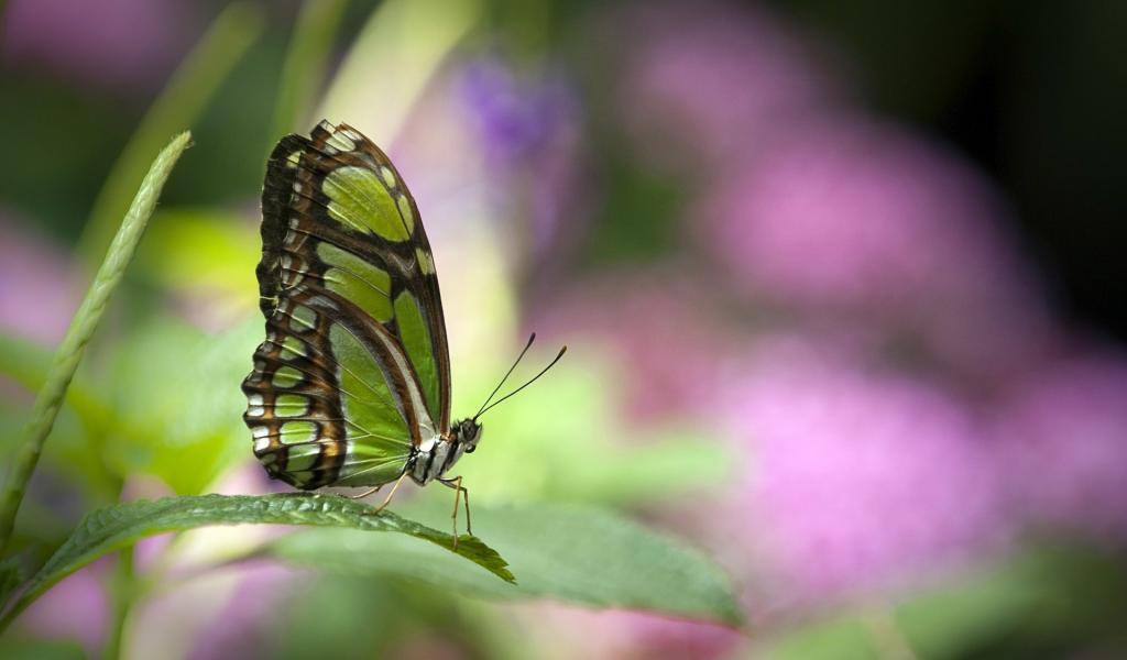 Wallpaper The green butterfly on a blade of grass