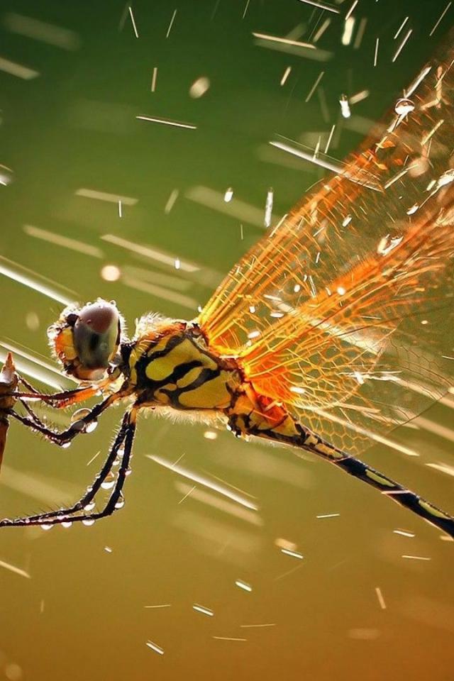 Wallpaper Dragonfly grabbed a branch in the rain