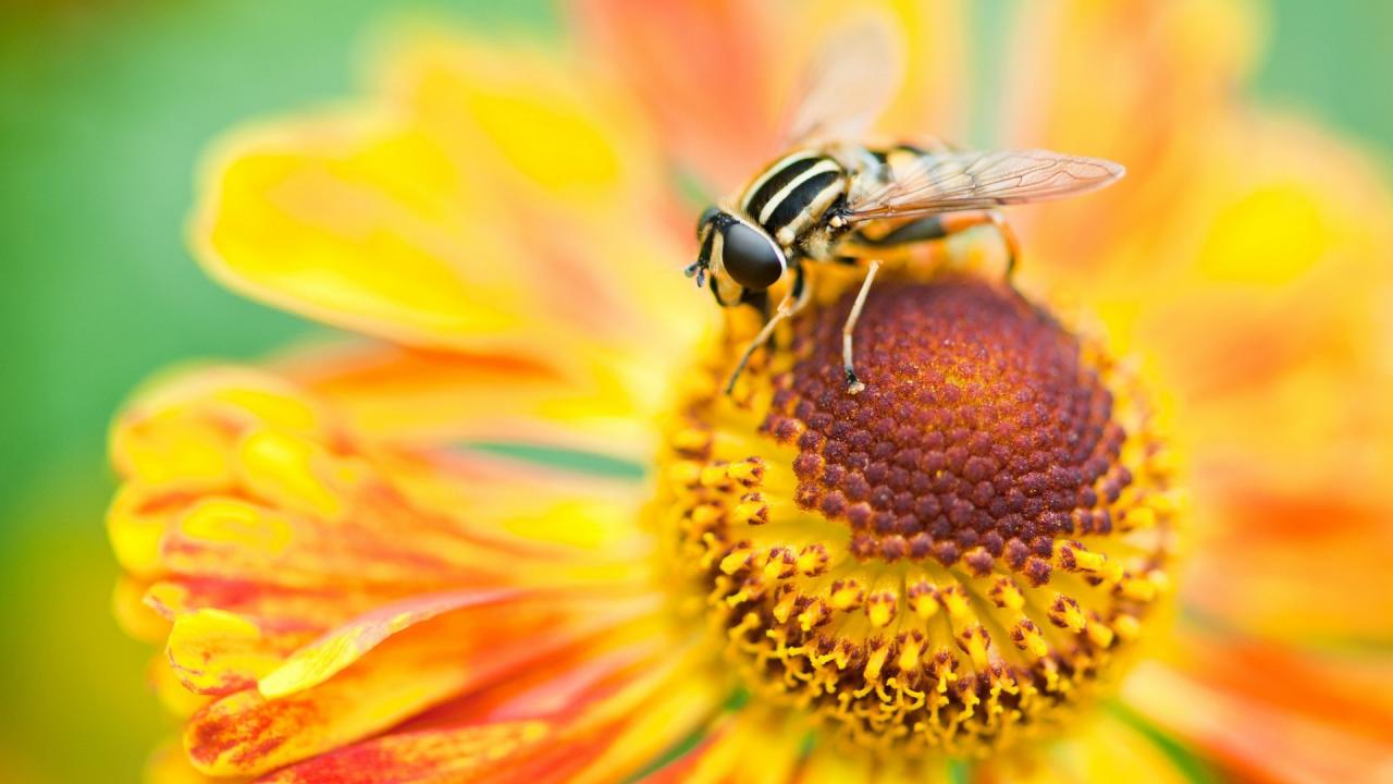 Wallpaper Macro photo of a fly on a flower