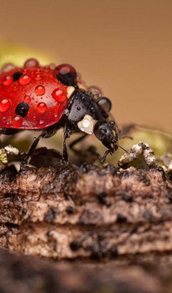 Wallpaper Red beetle covered dew