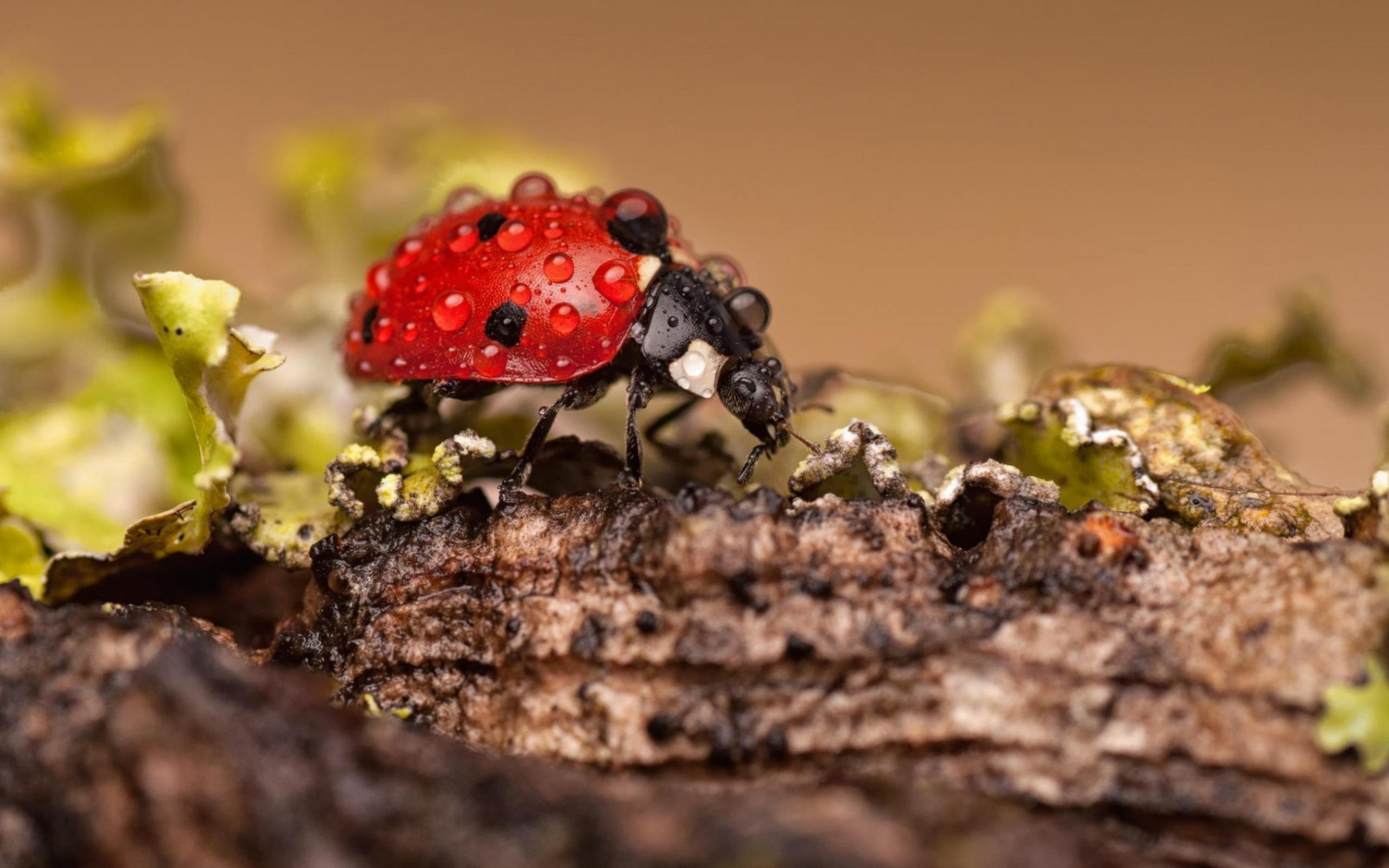 Wallpaper Red beetle covered dew