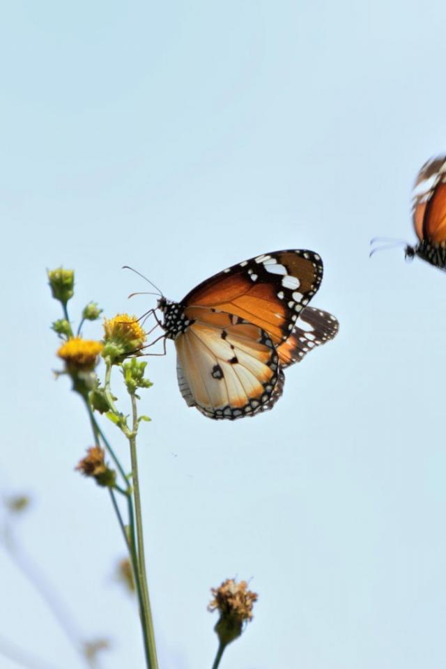 Wallpaper Two butterflies flew to flower