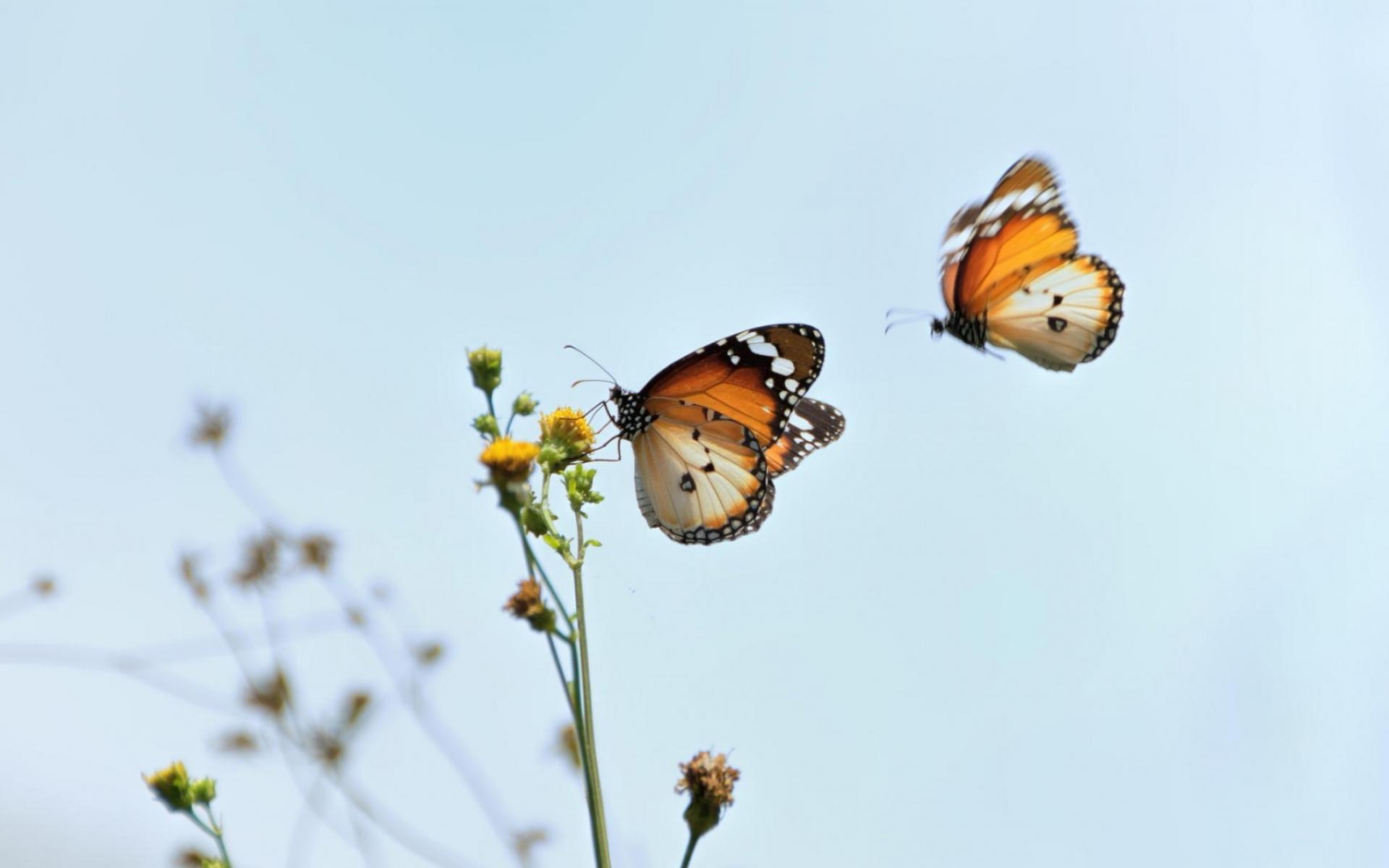 Wallpaper Two butterflies flew to flower
