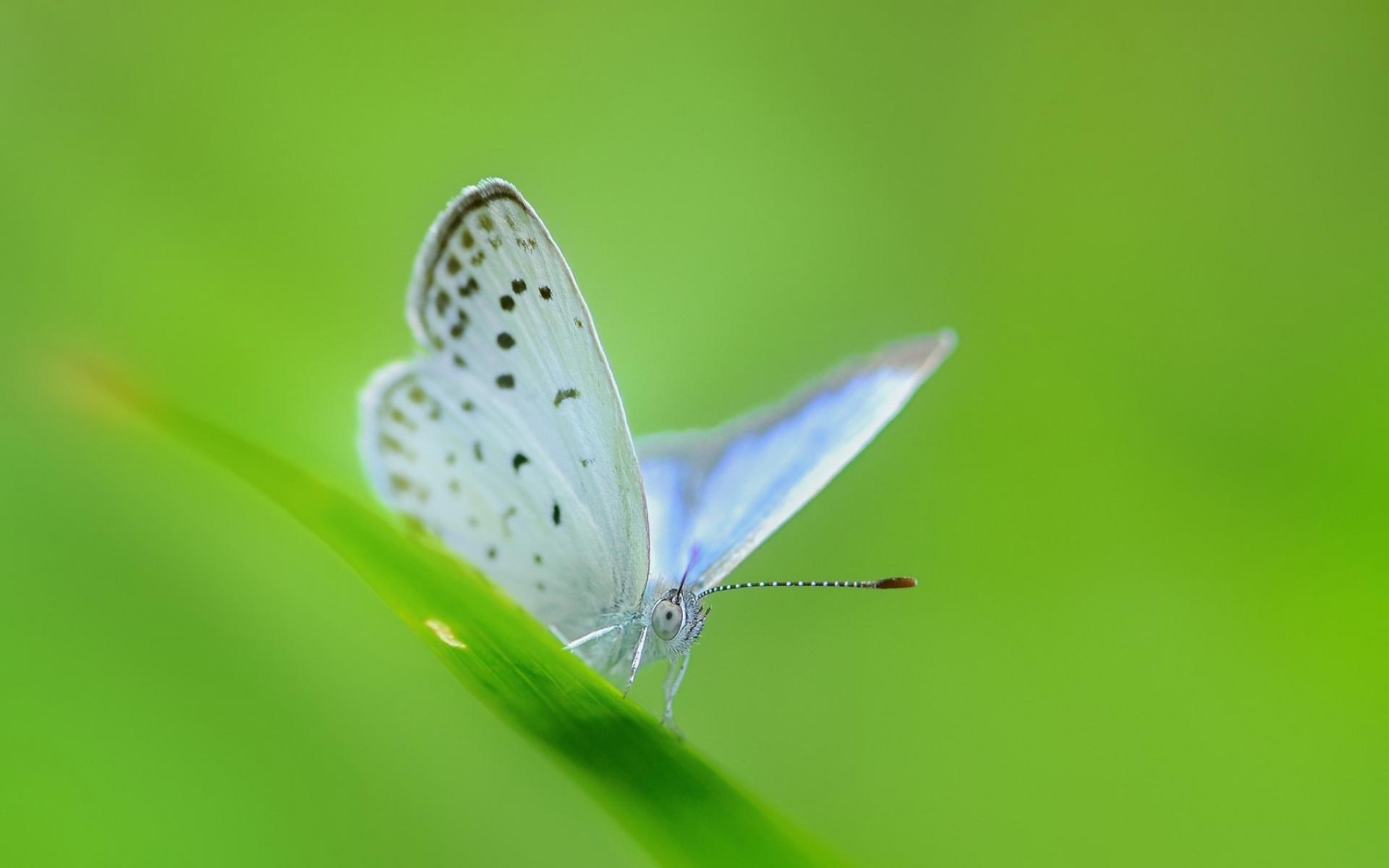 Wallpaper White butterfly on a green blade of grass